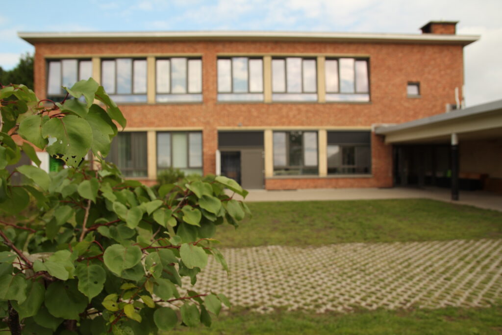 Cet espace dispose de deux cuisines : la première est une cuisine domestique à hauteur d’enfant, tandis que la seconde est une cuisine professionnelle de type collective en inox, répondant aux normes AFSCA.